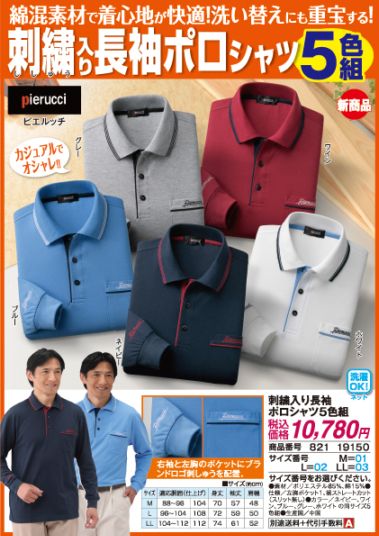 ピエルッチ カジュアル7分袖ポロシャツ(5色組) ##19110
