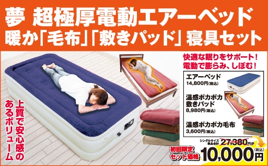 夢 超極厚 電動エアーベッド 毛布と敷きパッドをセット! CMQR