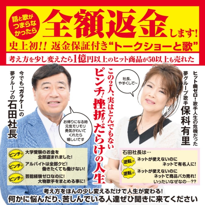 夢グループ石田社長&保科有里 トークショー&歌 2023年12月18日(月) ハーバーホール ##529727