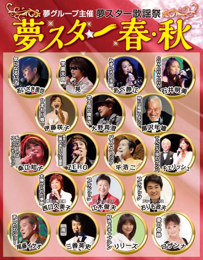 江木俊夫/おりも政夫/ロザンナ/平浩二/大野真澄/西口久美子/あべ静江/あいざき進也/伊藤咲子/リリーズ/桑江知子/ZERO